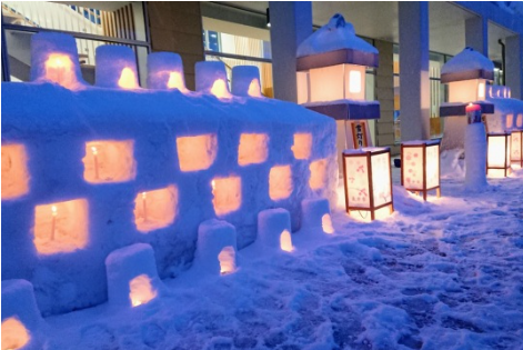 手作りの雪灯りが街中に灯り、幻想的な雰囲気に包まれるお祭りです。ランタンの種類も多種多様で、毎年違った顔をのぞかせてくれます。